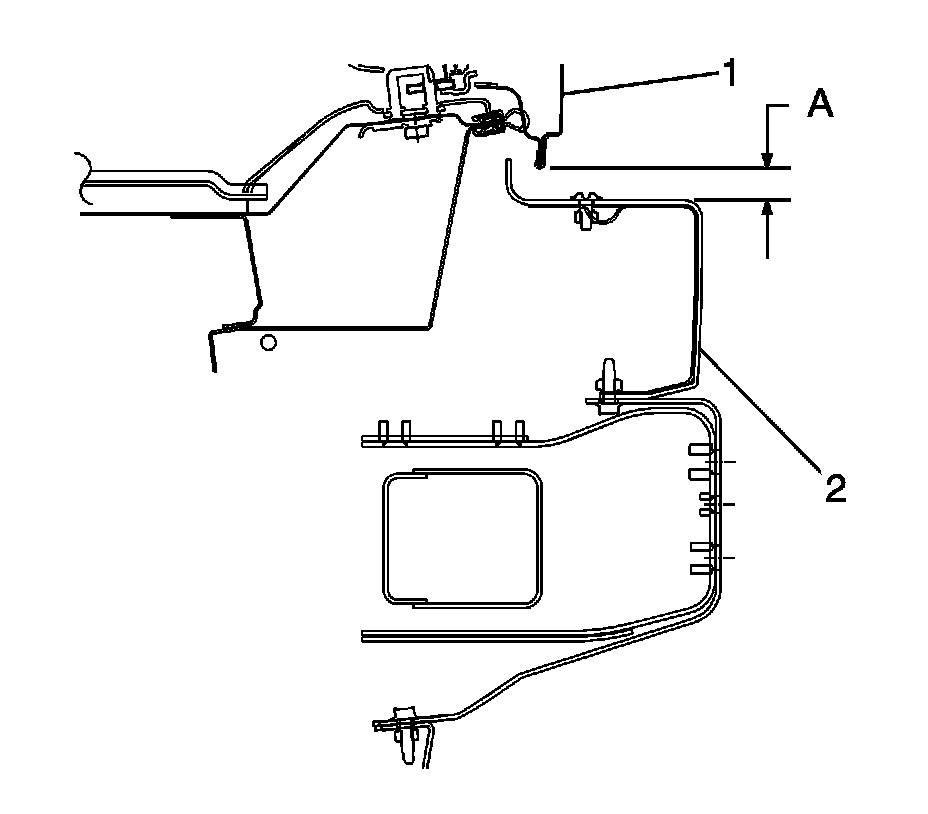 6. Adjust the liftgate (1) to roof (2) gap (A) to 13 mm (0.51 in).