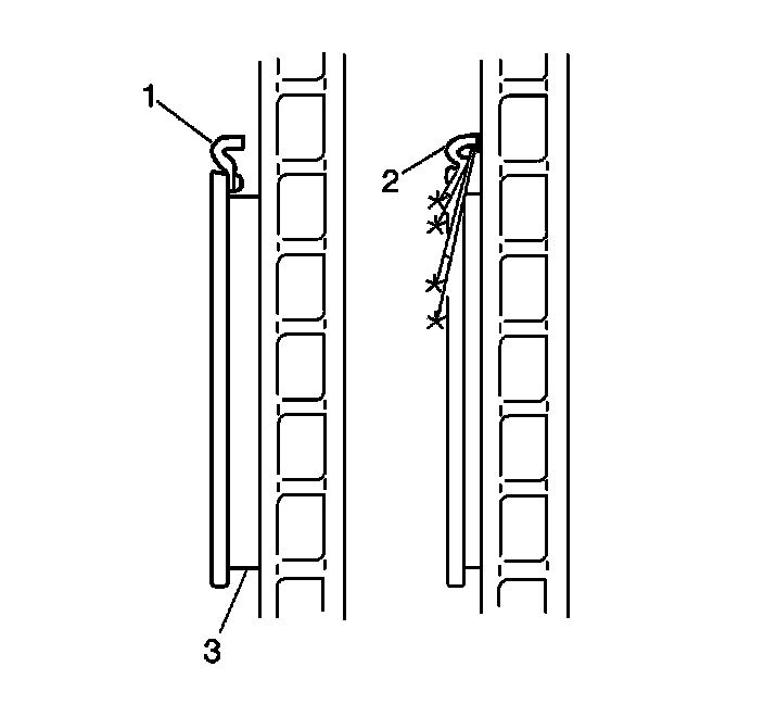 Replace the disc brake pads when the friction surface (3) is worn to within