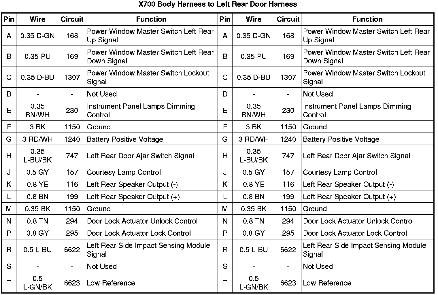 X700 Body Harness to Left Rear Door Harness