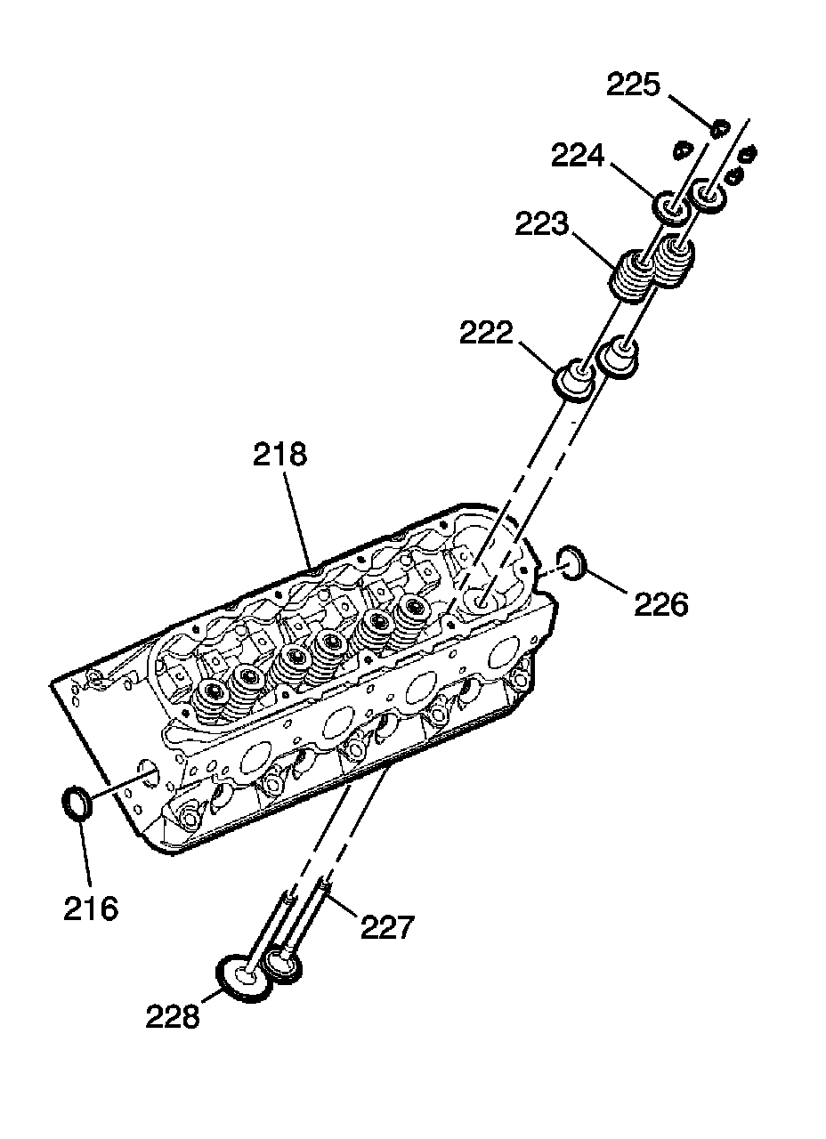 15. Remove the valve stem oil seal and shim (222) assembly.
