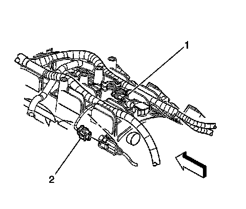 1. Remove the EVAP tube end (2) from the solenoid (1).
