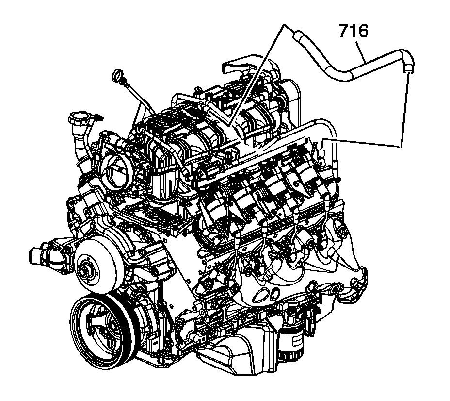9. Install the positive crankcase ventilation (PCV) hose - dirty air (716).