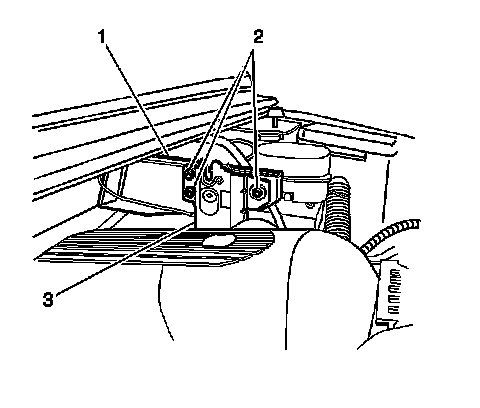 2. Remove hood latch (1) from cowl.