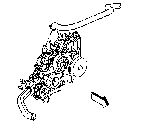 9. Remove the heater hoses. Refer to Heater Inlet Hose Replacement (Heater Inlet Hose Replacement) and Heater Outlet Hose Replacement (Heater Outlet Hose Replacement).