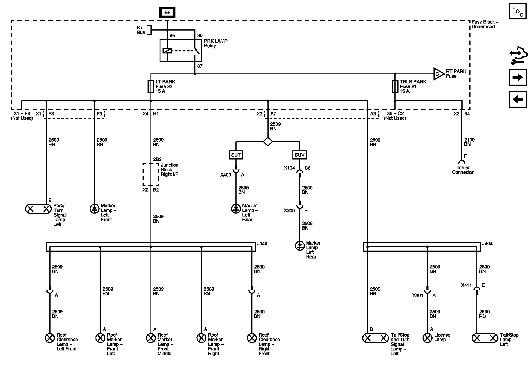 PRK LAMP Relay, LT PARK and TRLR PARK Fuses