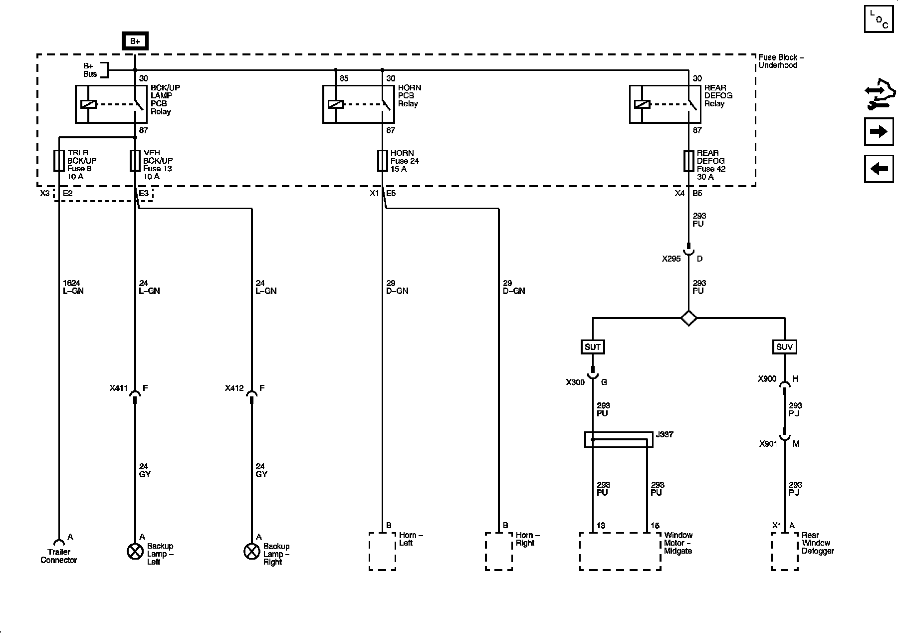 VEH BCK/UP, HORN and REAR DEFOG Fuses