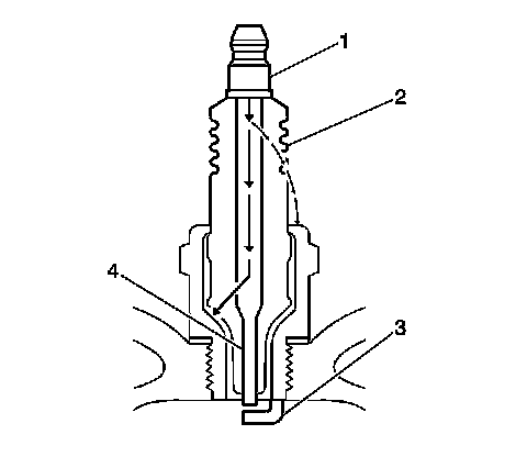 - Inspect for the correct spark plug torque. Refer to Ignition System Specifications (Specifications). Insufficient torque can prevent correct spark plug operation. An over torqued spark plug, causes the insulator (2) to crack.