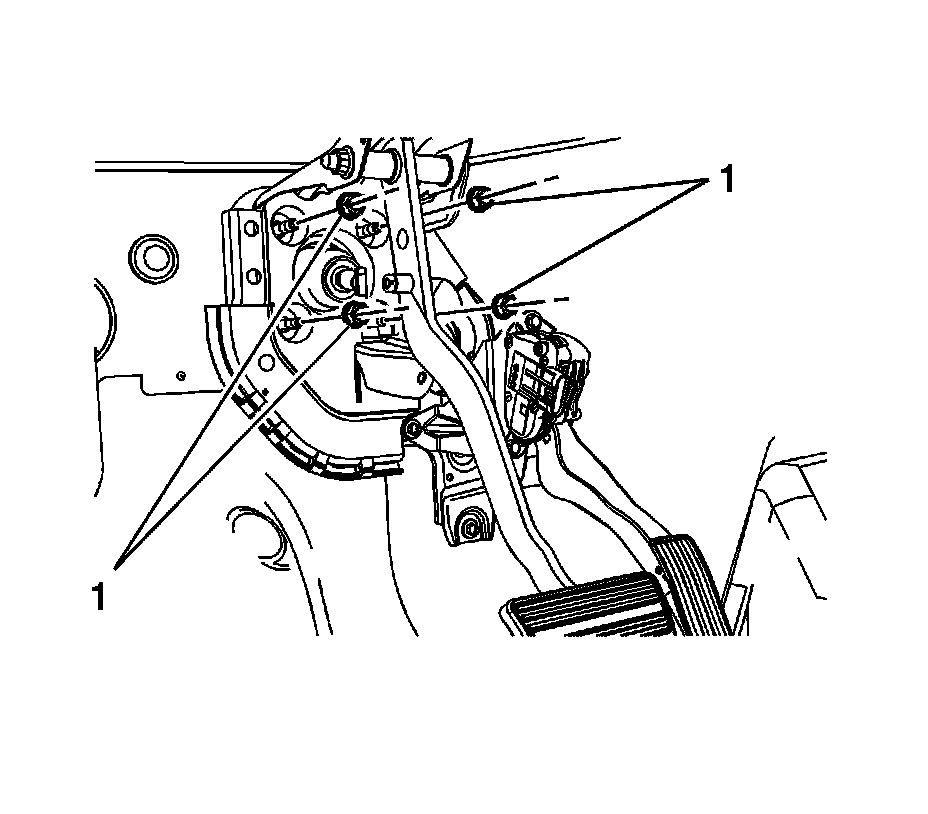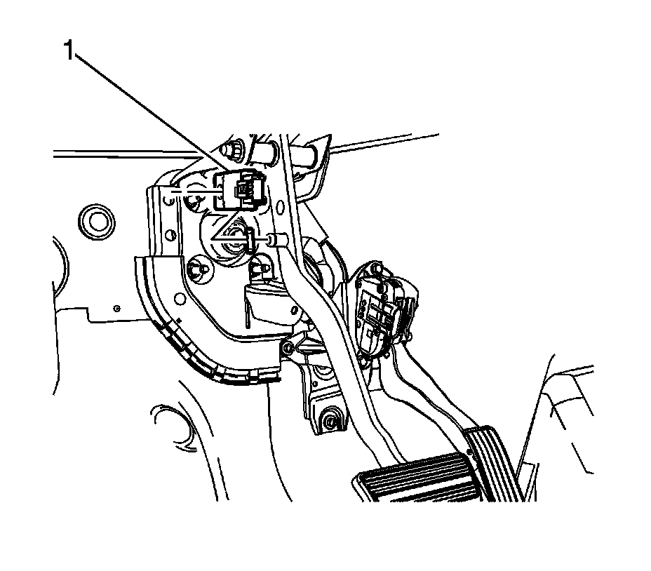 8. Simultaneously remove the brake master cylinder pushrod and the stoplamp switch (1) from the brake pedal clevis pin.