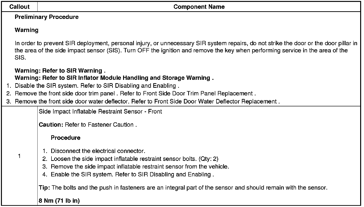 Inflatable Restraint Side Impact Sensor Replacement - Front