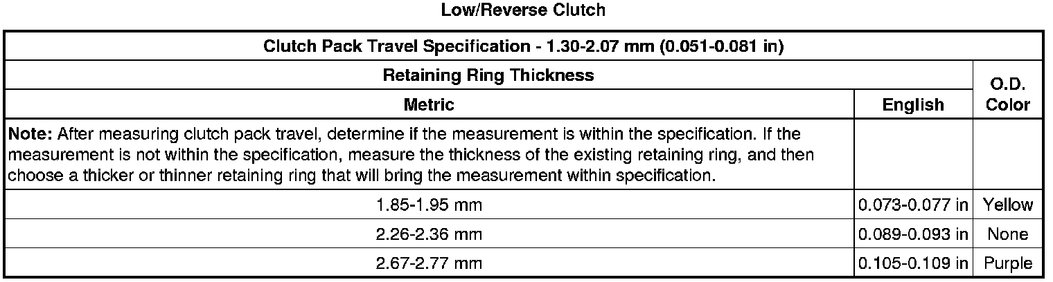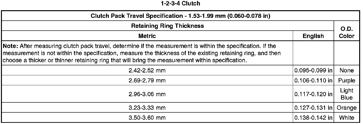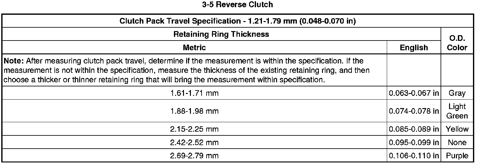 Clutch Backing Plate Retaining Ring Specifications (6L80)