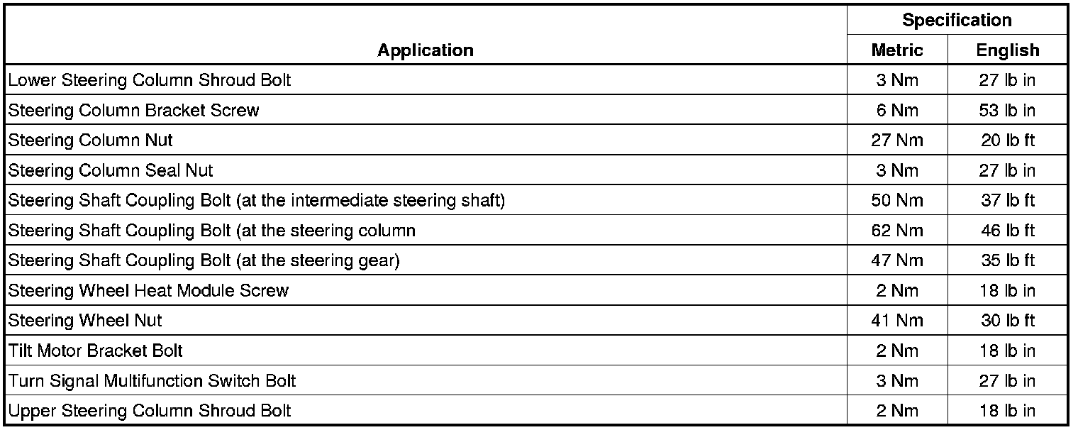Fastener Tightening Specifications