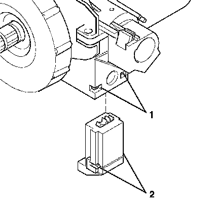 4. Insert the ignition/start switch into the ignition lock cylinder case. The tabs (2) on the ignition/start switch MUST be seated inside the ignition lock cylinder case (1) for proper installation.
