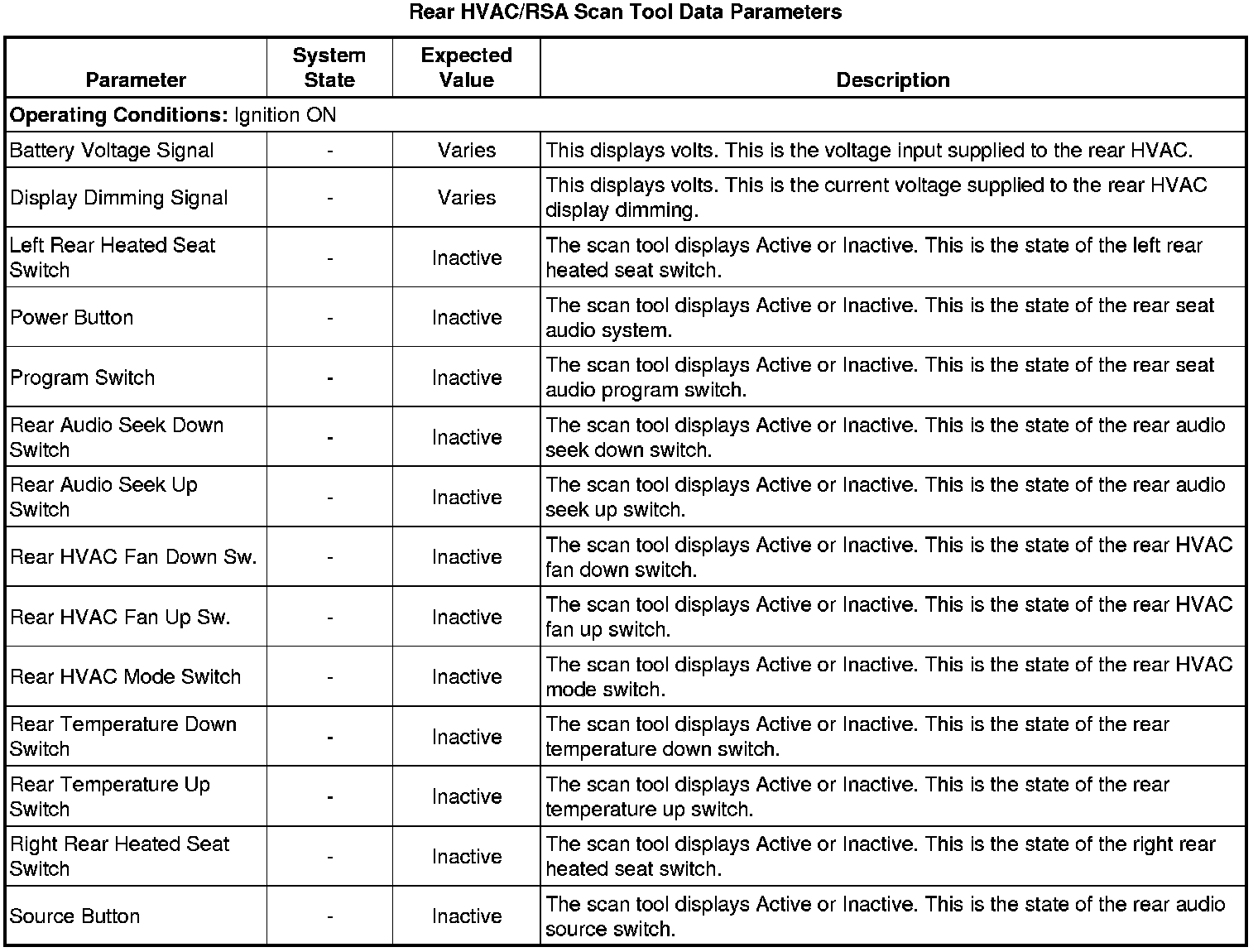 Auxiliary Heater and Air Conditioning Control Module Scan Tool Information