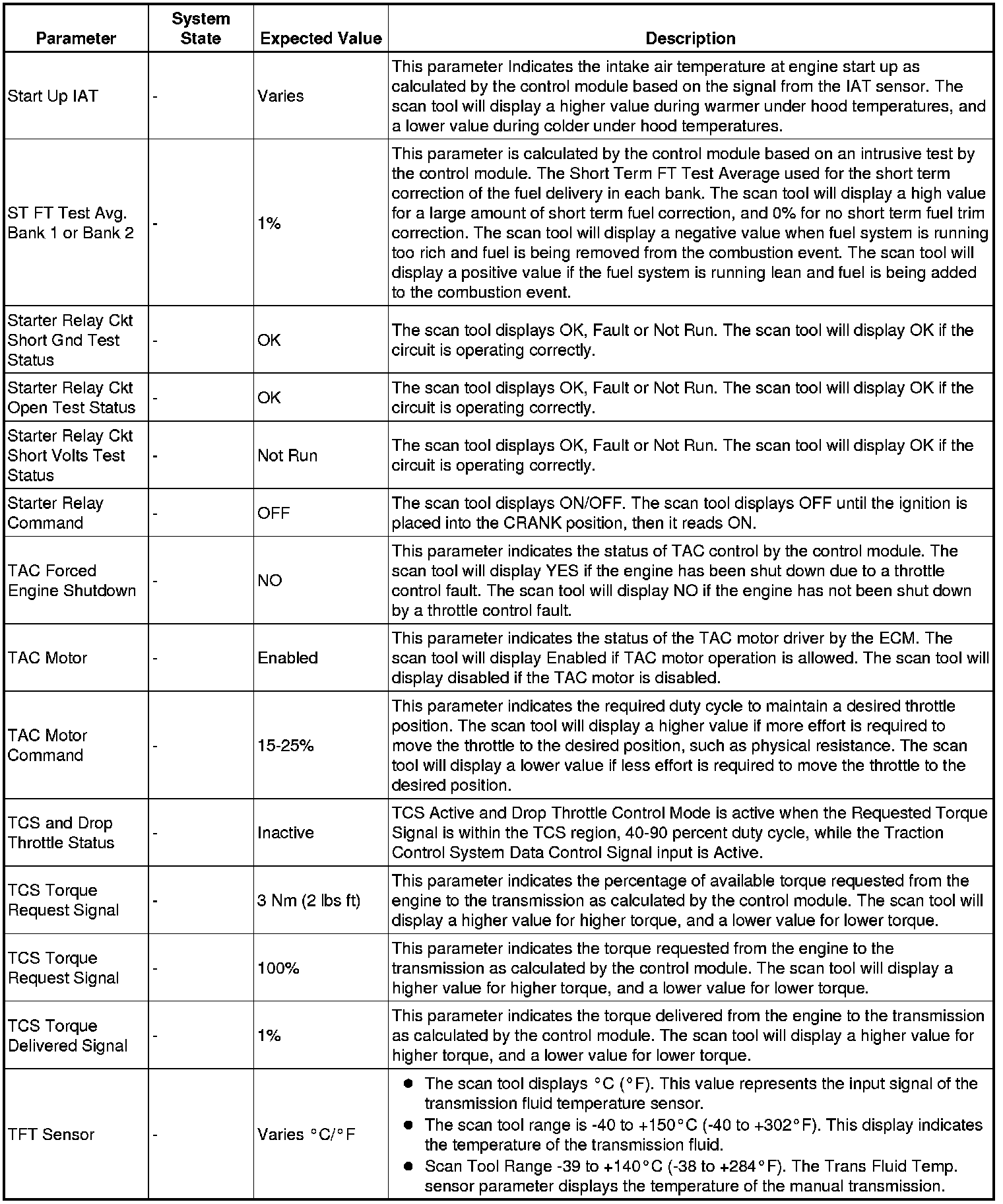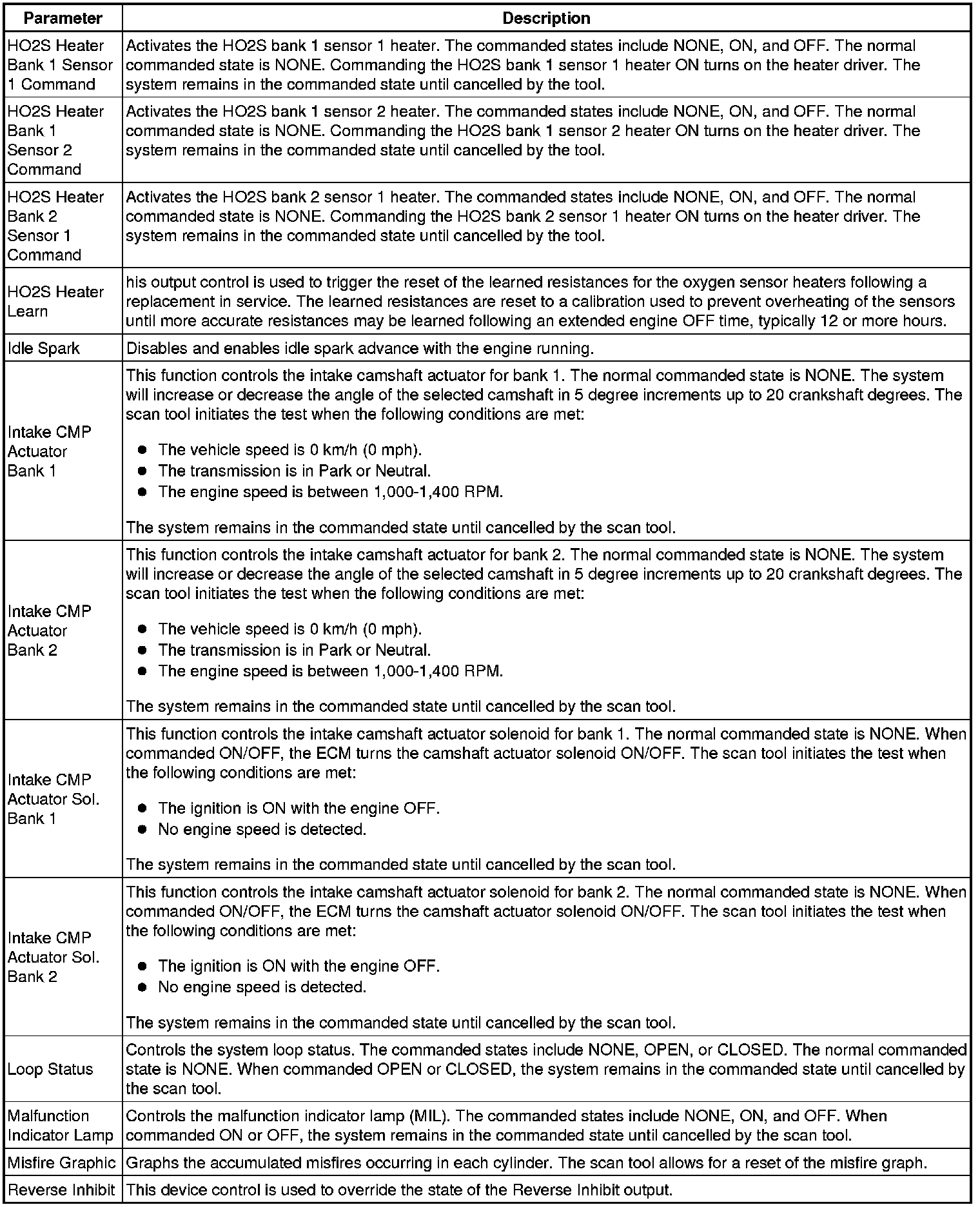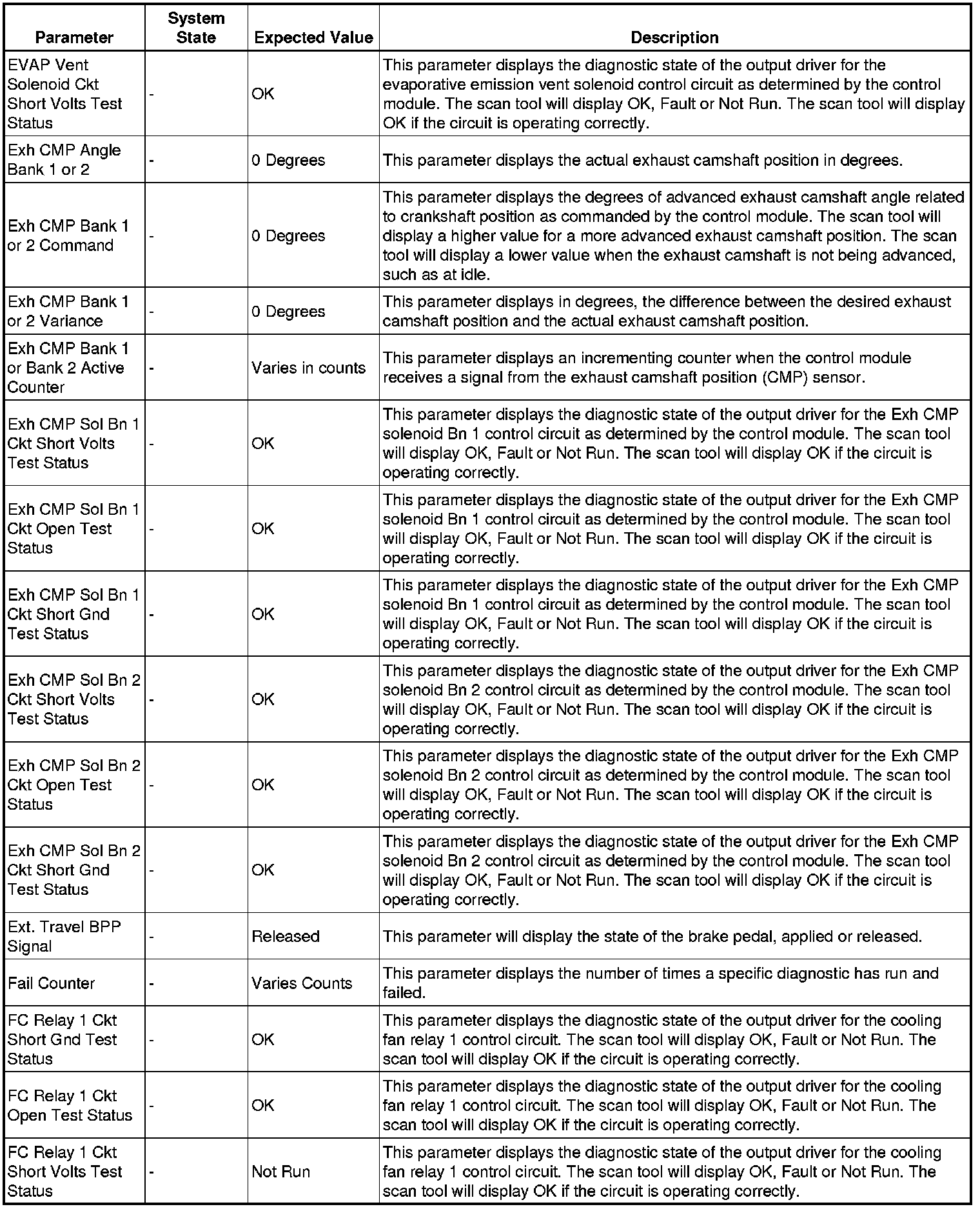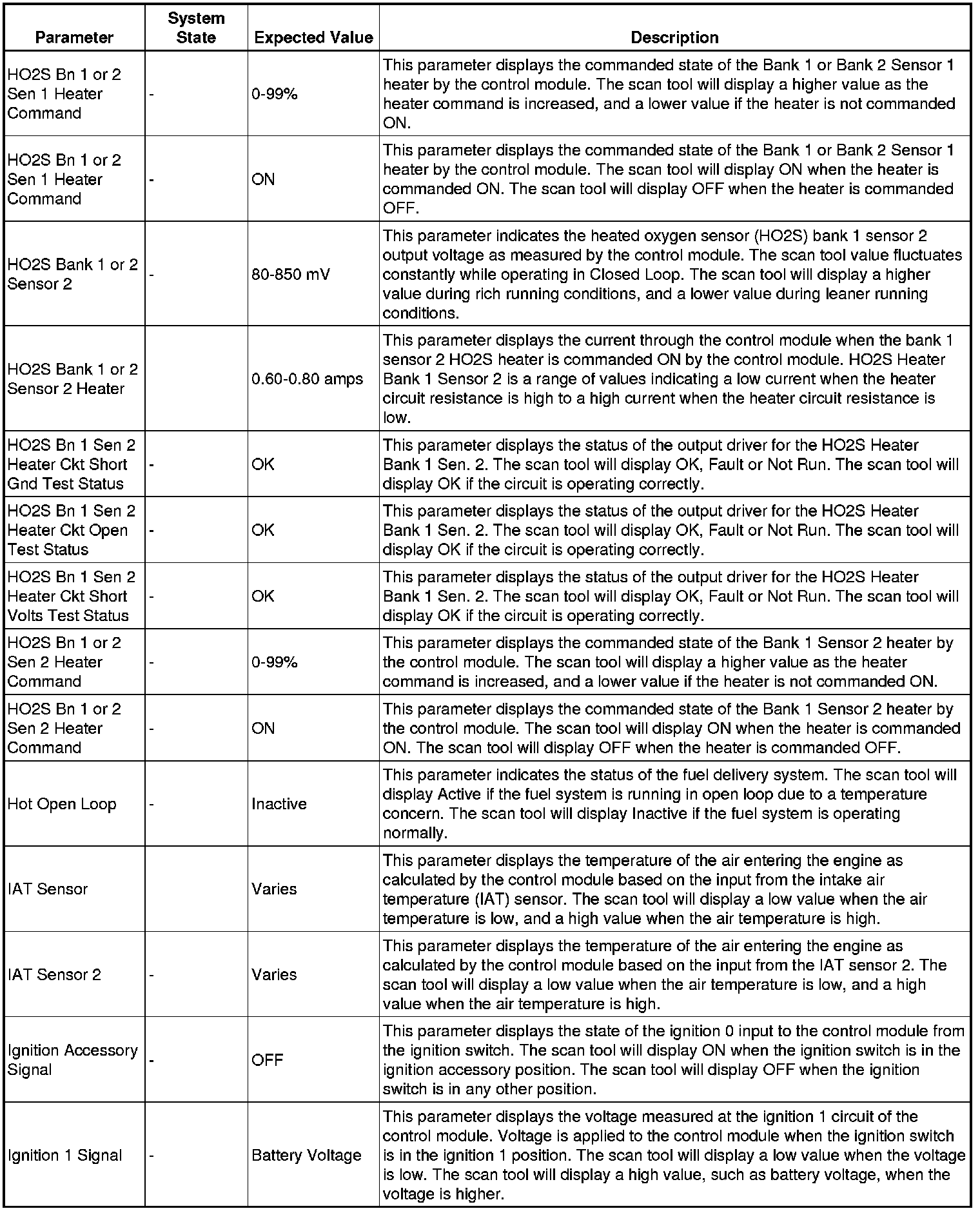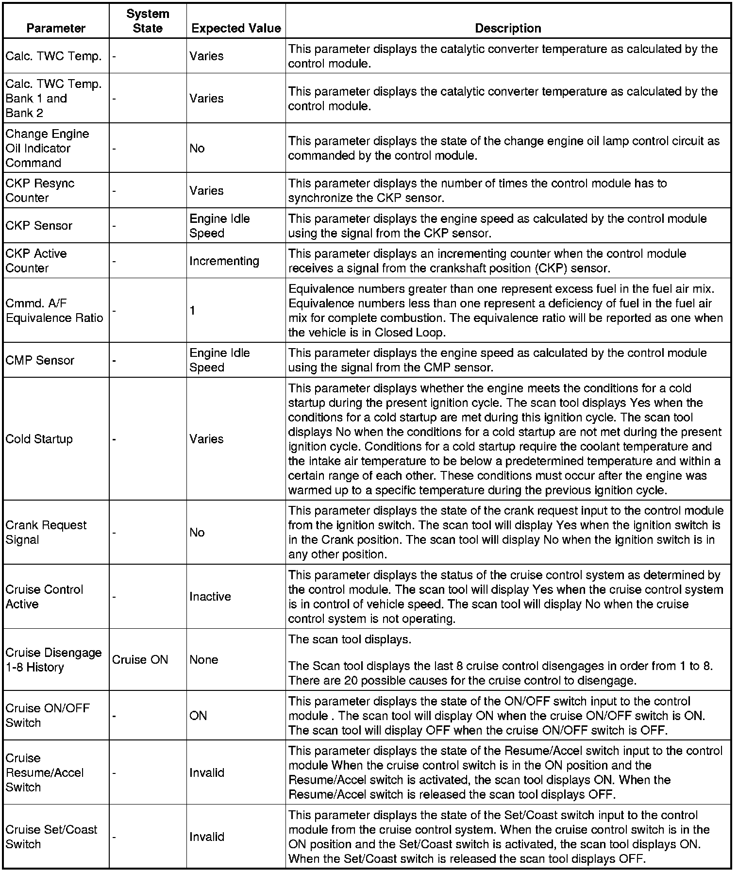 Only the parameters listed below are referenced in this service information for use in diagnosis.