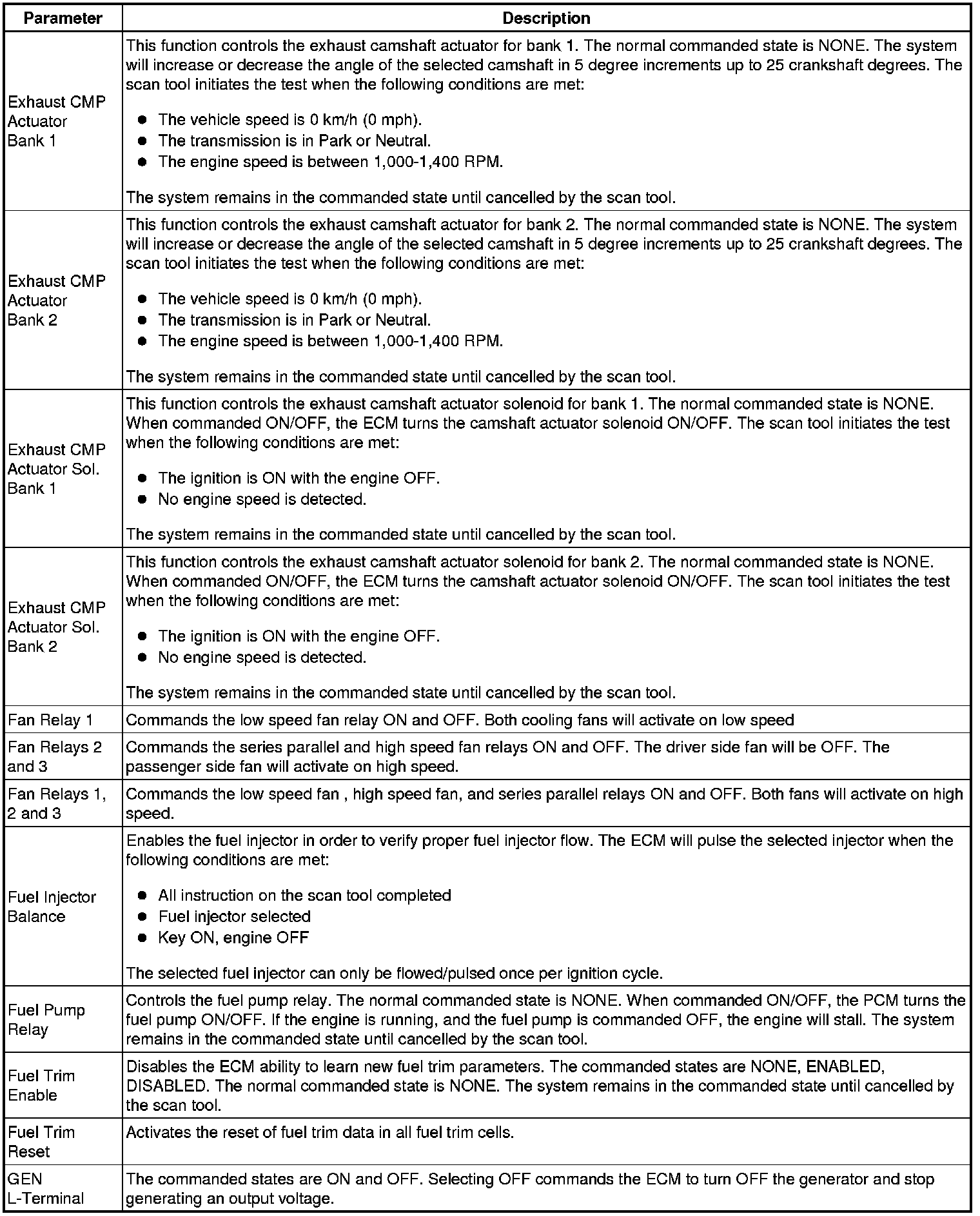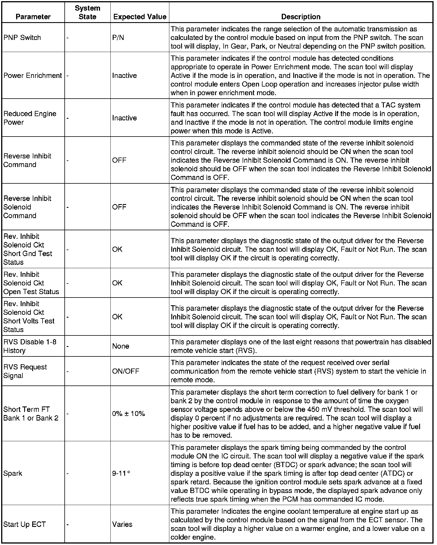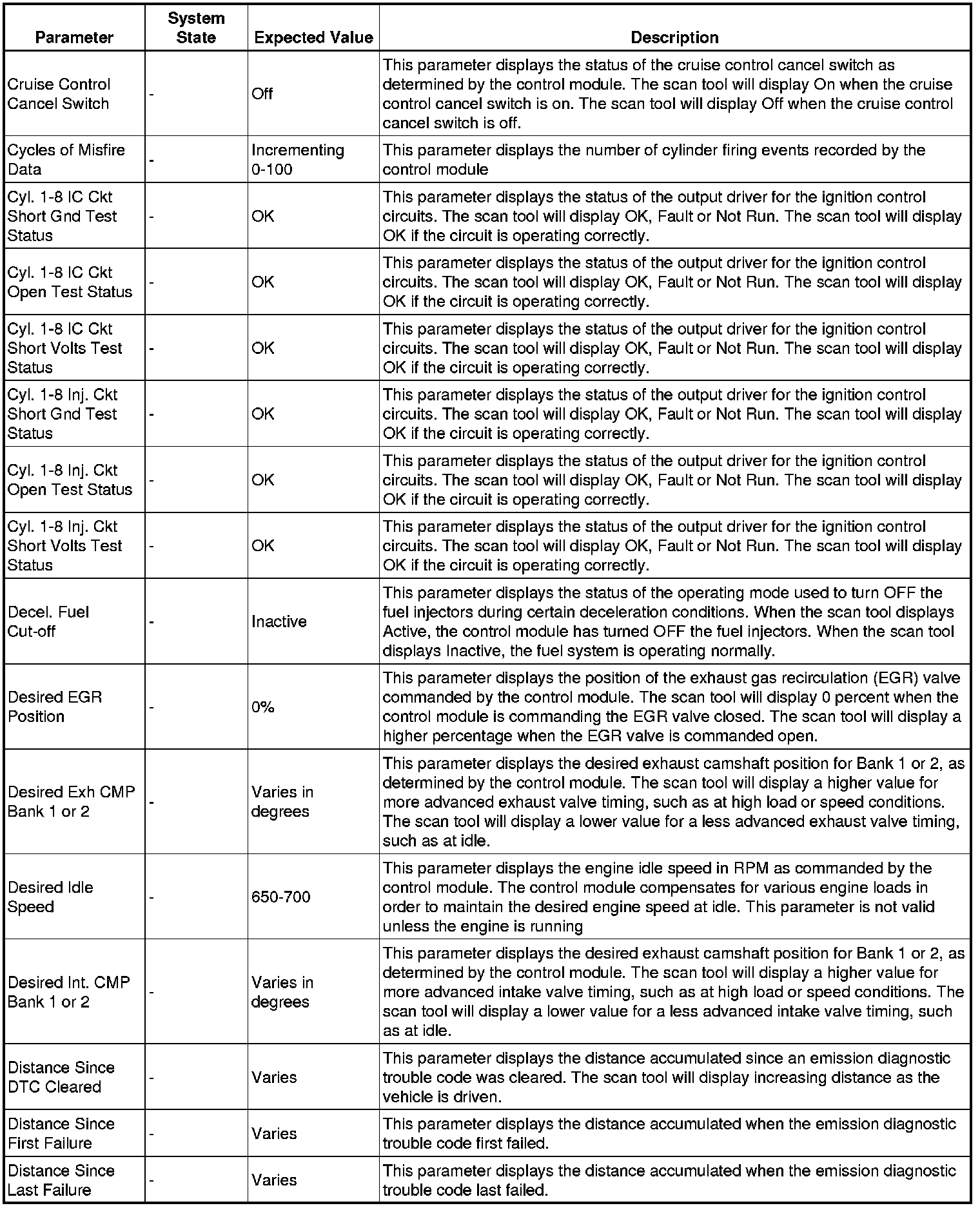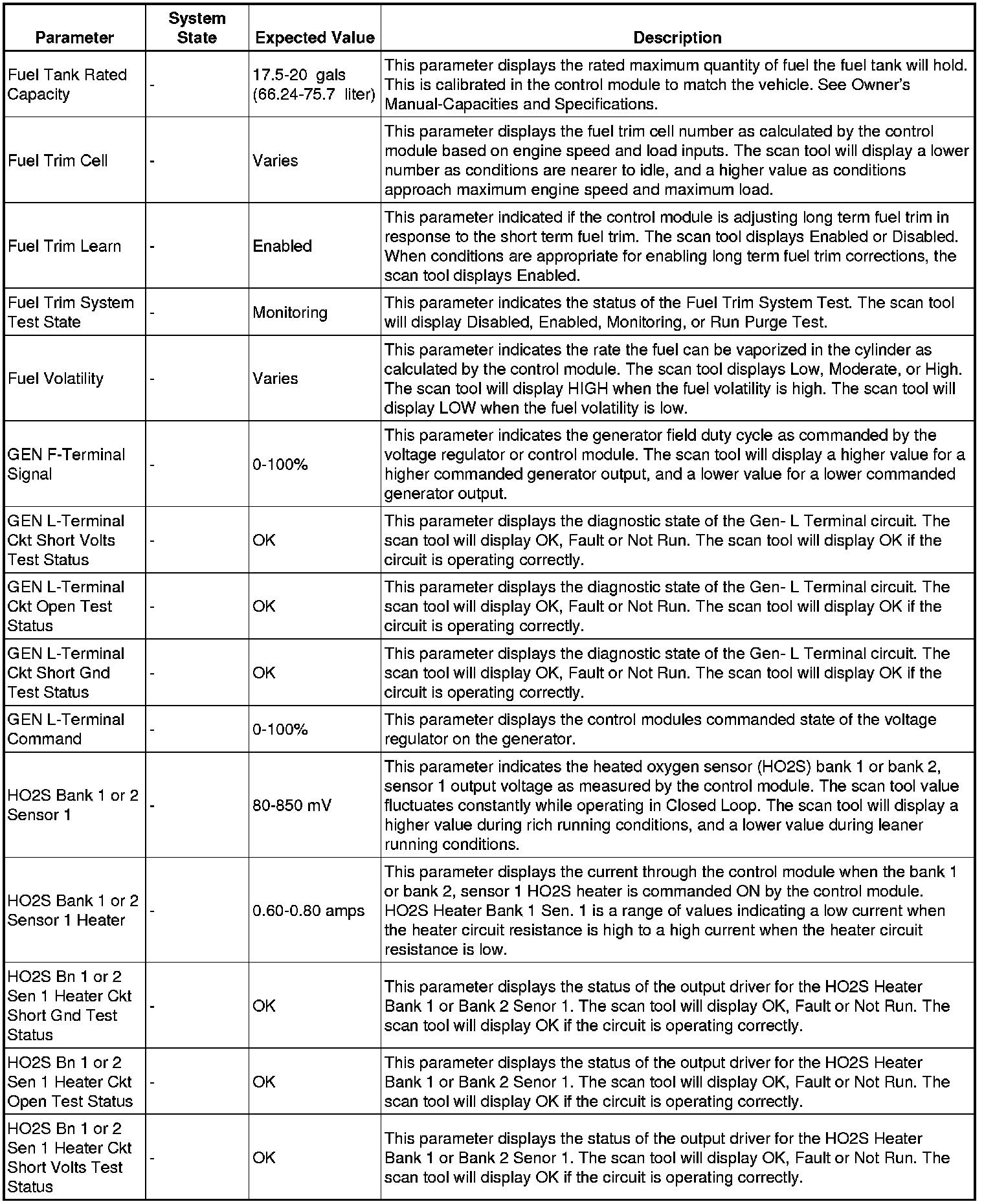 The Engine Control Module Scan Tool Data List contains all engine-related parameters that are available on the scan tool. The list is arranged in alphabetical order. A given parameter may appear in any one of the data lists, and in some cases may appear more than once, or in more than one data list in order to group certain related parameters together.