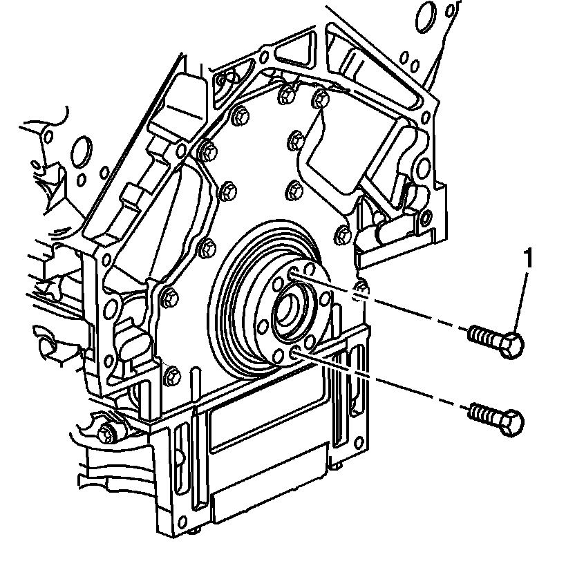 3. Apply threadlock to the threads of the flywheel bolts. Refer to Adhesives, Fluids, Lubricants, and Sealers (Sealers, Adhesives, and Lubricants) for the correct part number.
