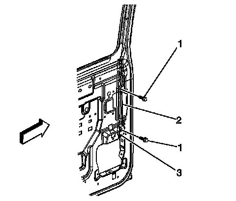 2. Remove the door trim panel. Refer to Rear Side Door Trim Panel Replacement (Rear Side Door Trim Panel Replacement).