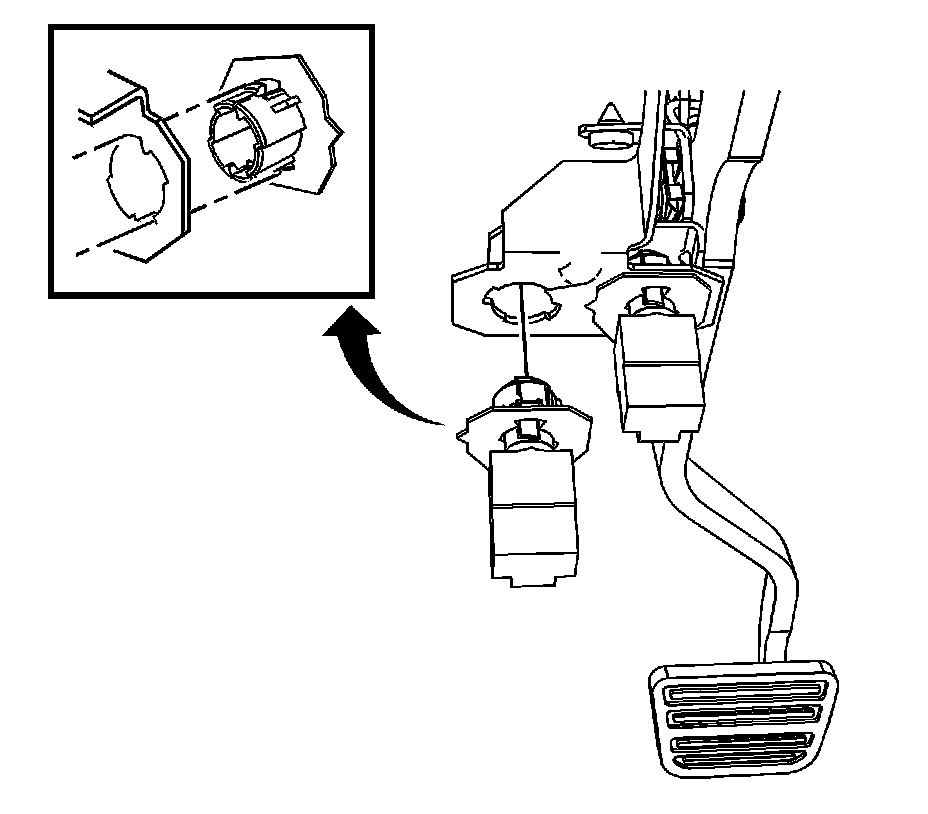 4. While holding the brake pedal in position rearward, push the switch inward fully until the switch body contacts the brake pedal arm.
