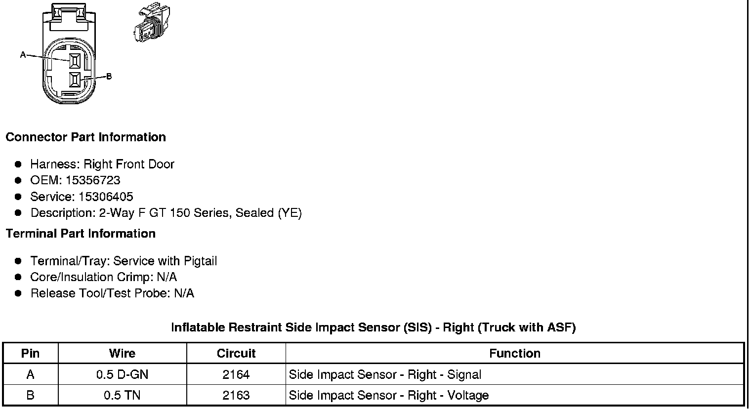 Inflatable Restraint Side Impact Sensor (SIS) - Right (Truck with ASF)