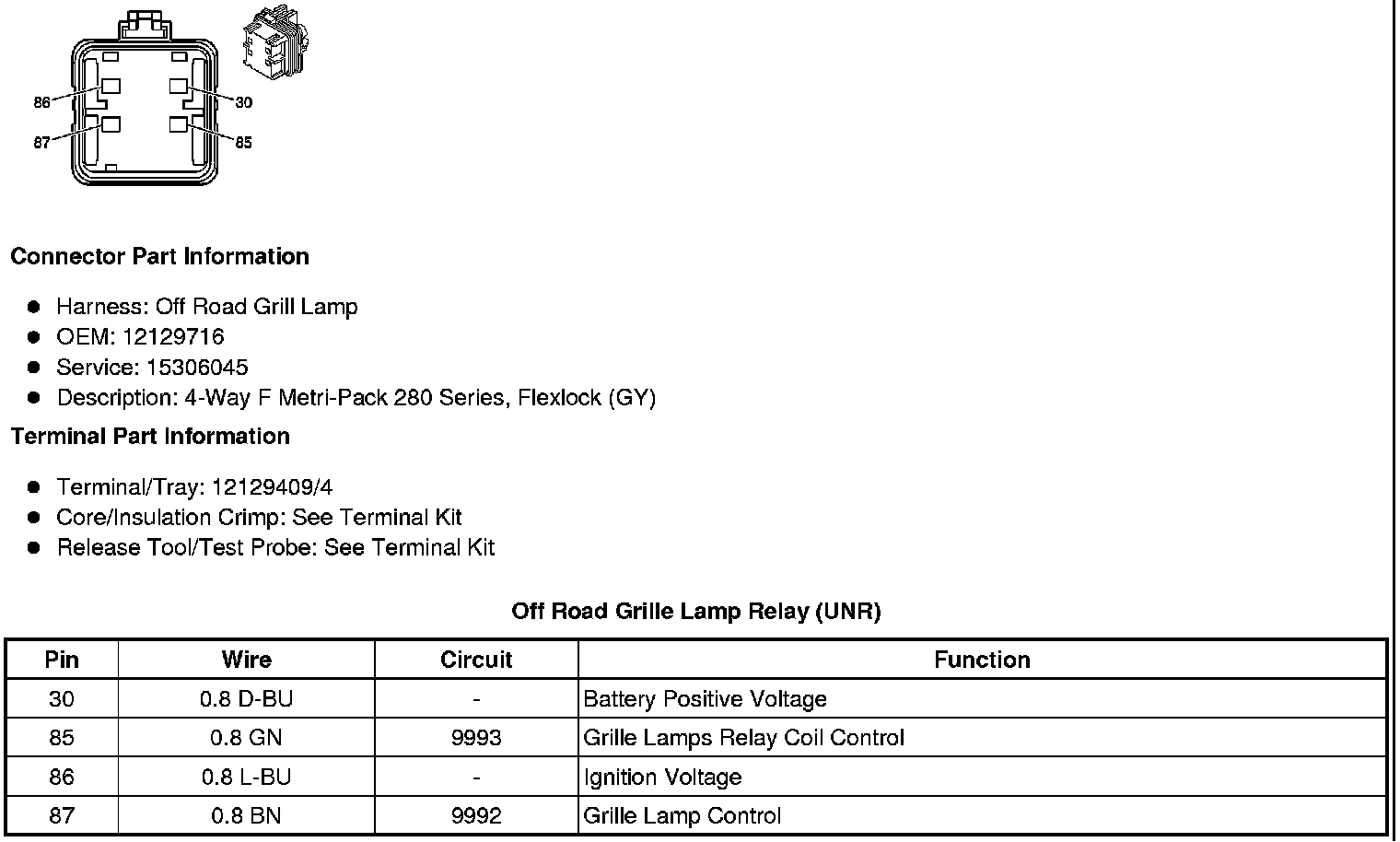 Off Road Grille Lamp Relay (UNR)