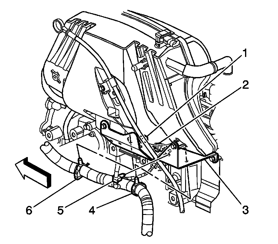 5. Disconnect the MAP sensor wiring harness retainer (4) from the intake manifold.
