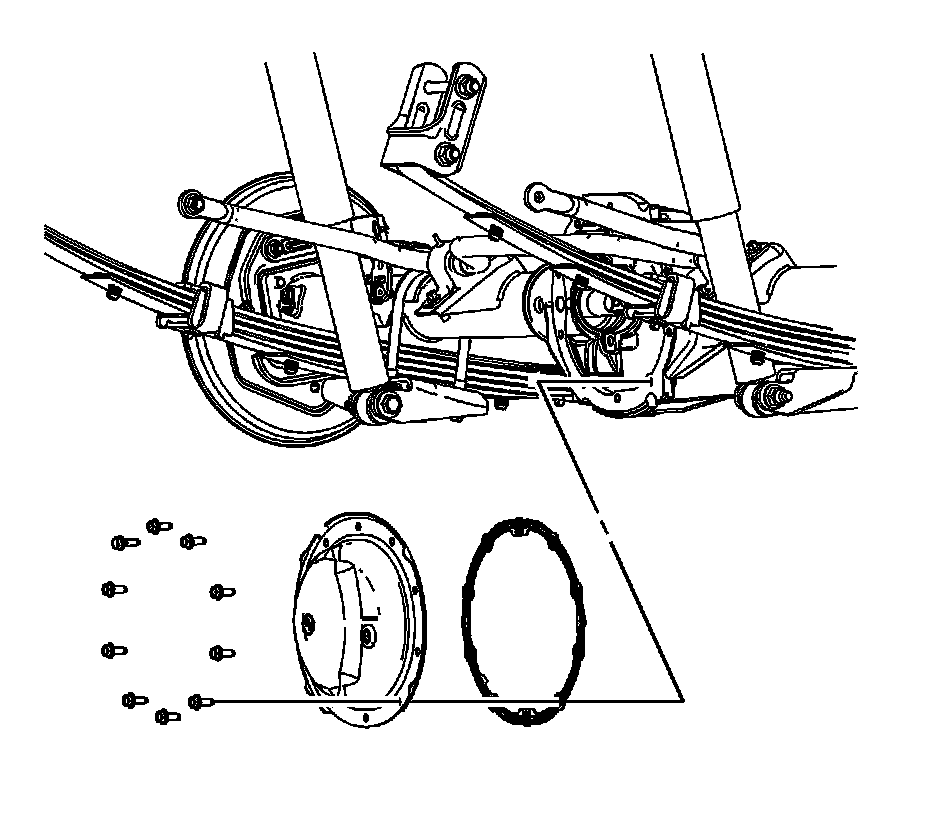 3. Remove the rear axle cover. Refer to Rear Axle Housing Cover and Gasket Replacement (Service and Repair).