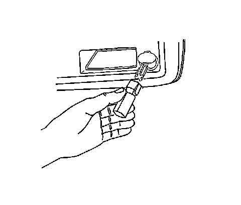 2. Remove the socket by placing one side of the "T" portion of the tool J 42059 into the socket and into the square window tab.