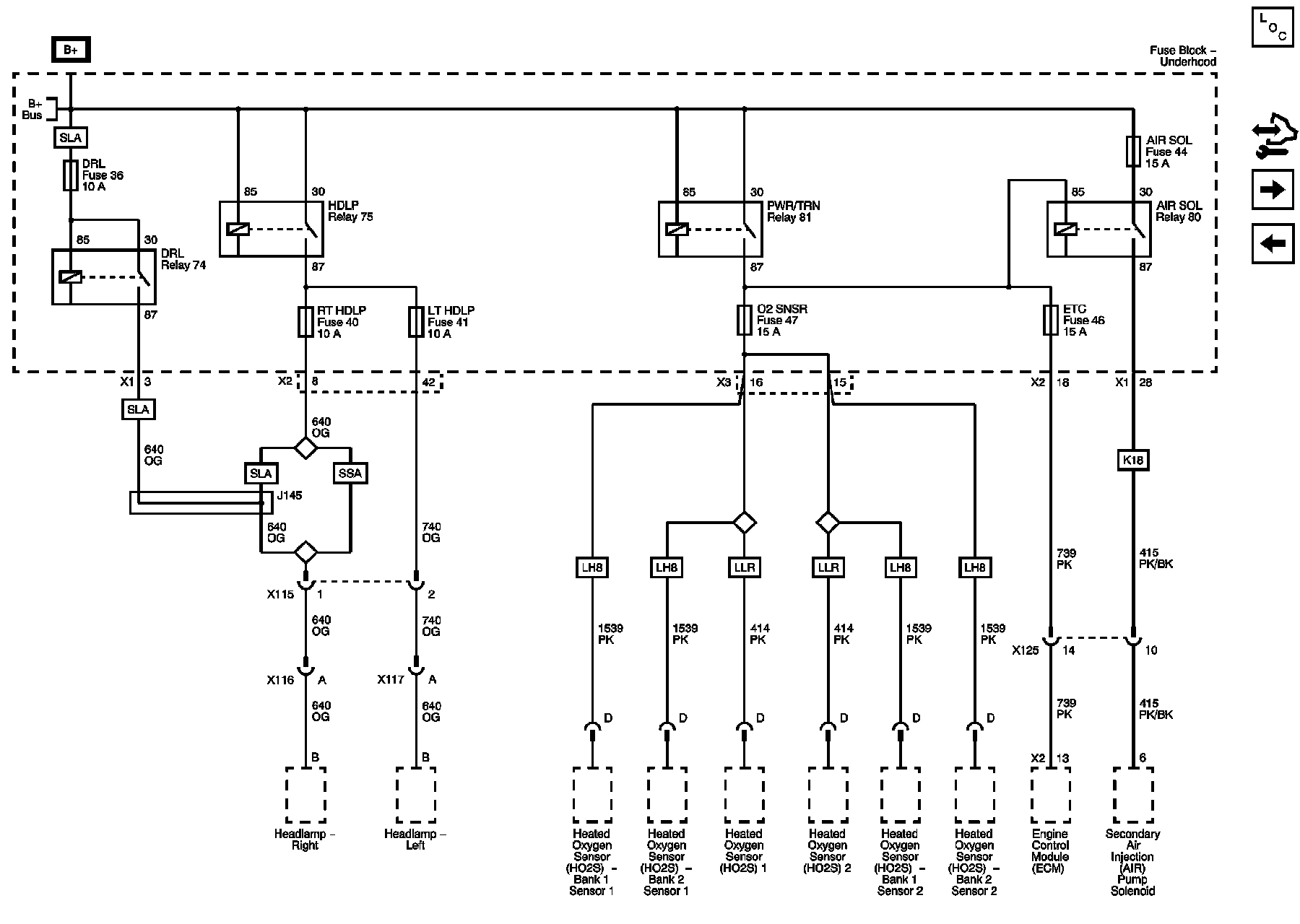 AIR SOL, DRL, ETC, LT HDLP, RT HDLP, and O2 SNSR Fuses