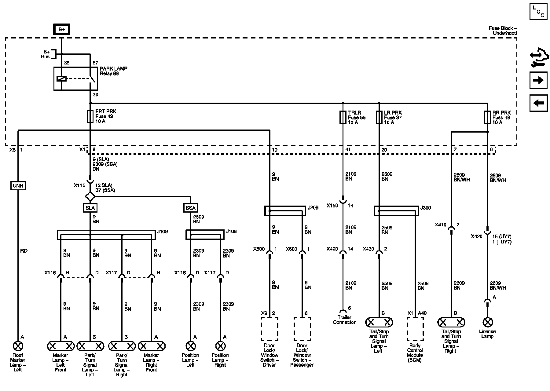 FRT PRK, LR PRK, RR PRK, and TRLR Fuses