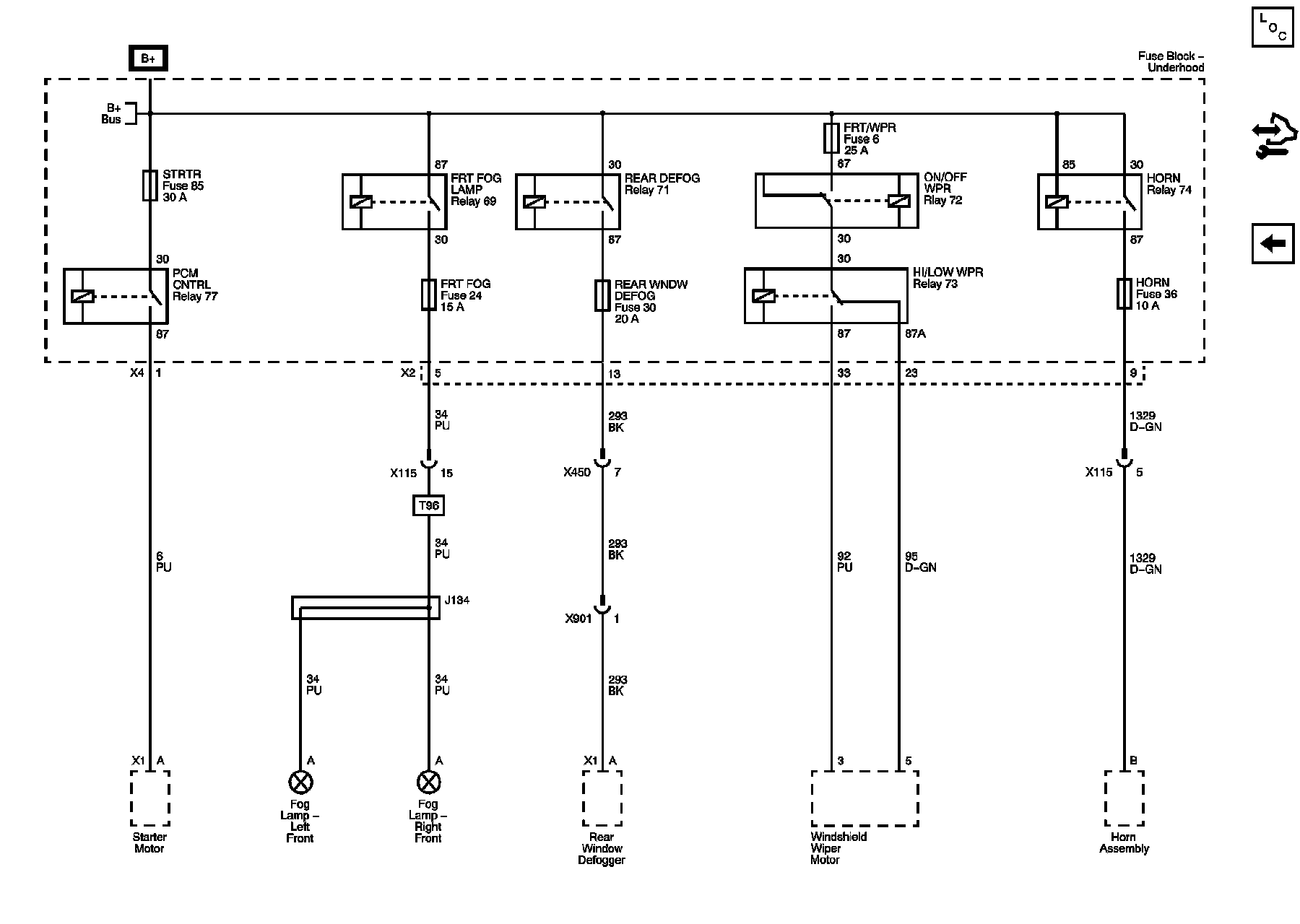 FRT FOG, FRT/WPR, HORN, REAR WNDW DEFOG, and STRTR Fuses