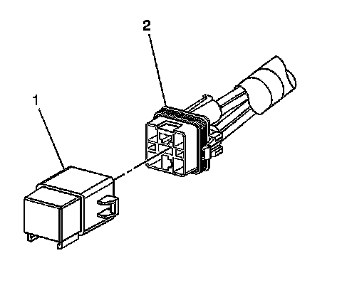 4. Separate the relay (1) from the wire harness connector (2).