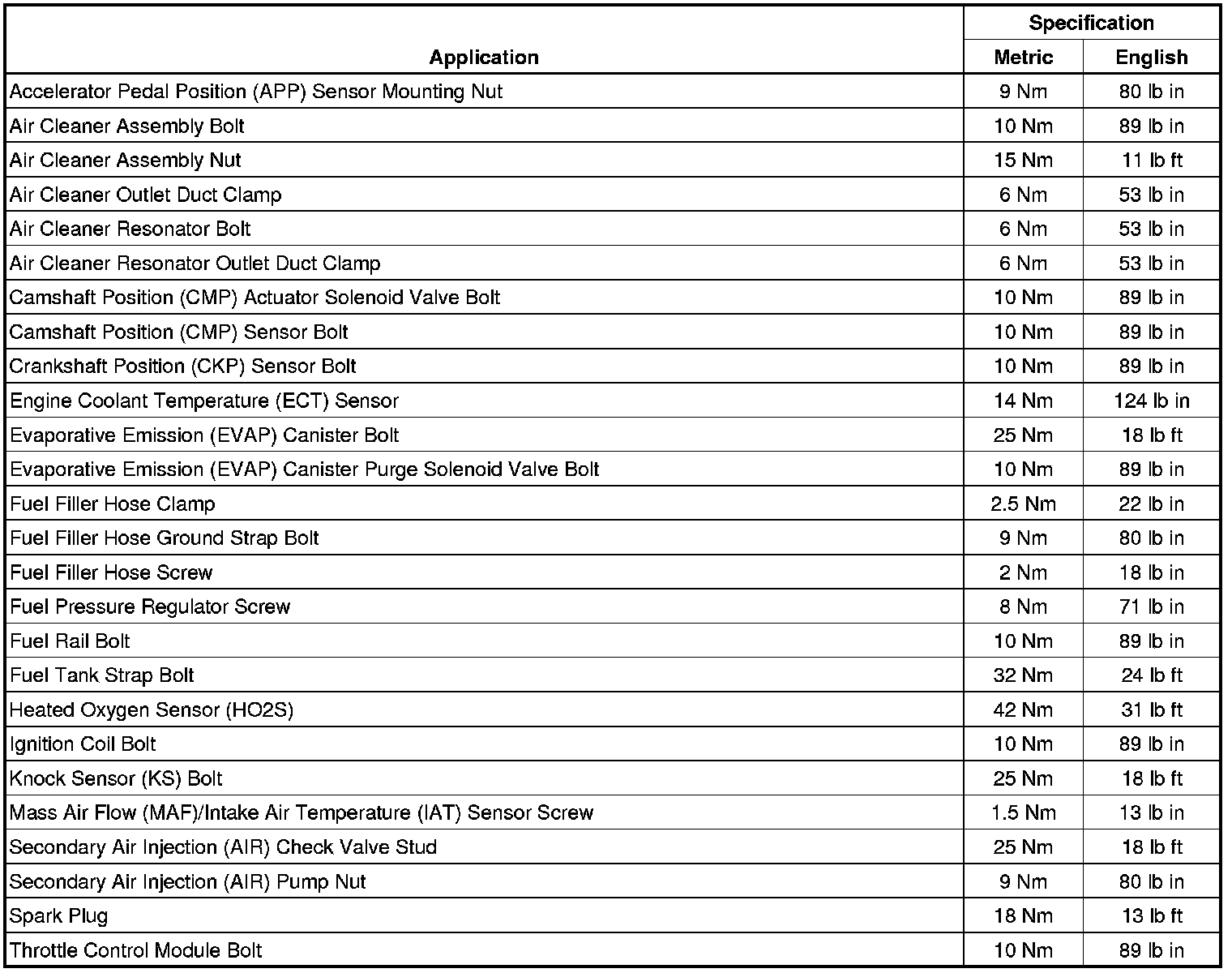 Fastener Tightening Specifications