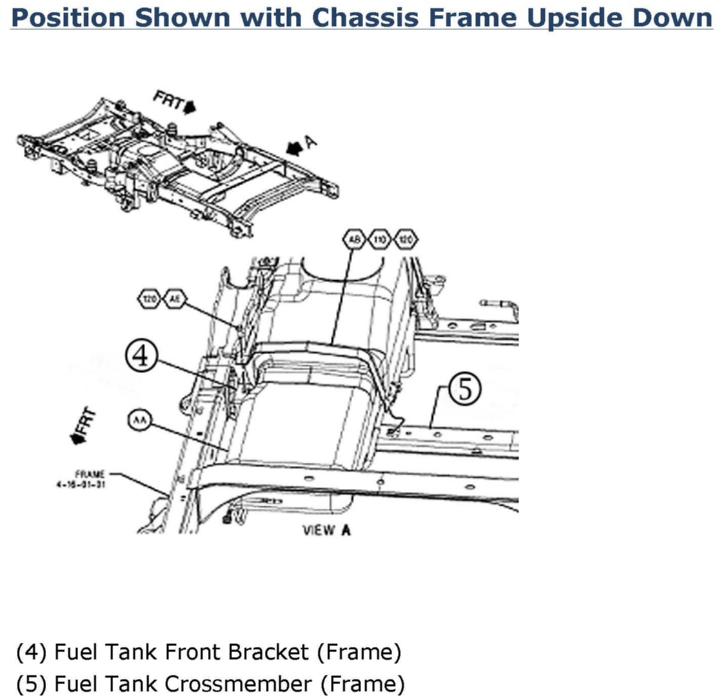 8.2. Move the new fuel tank front strap up until it touches the frame crossmember upper surface.