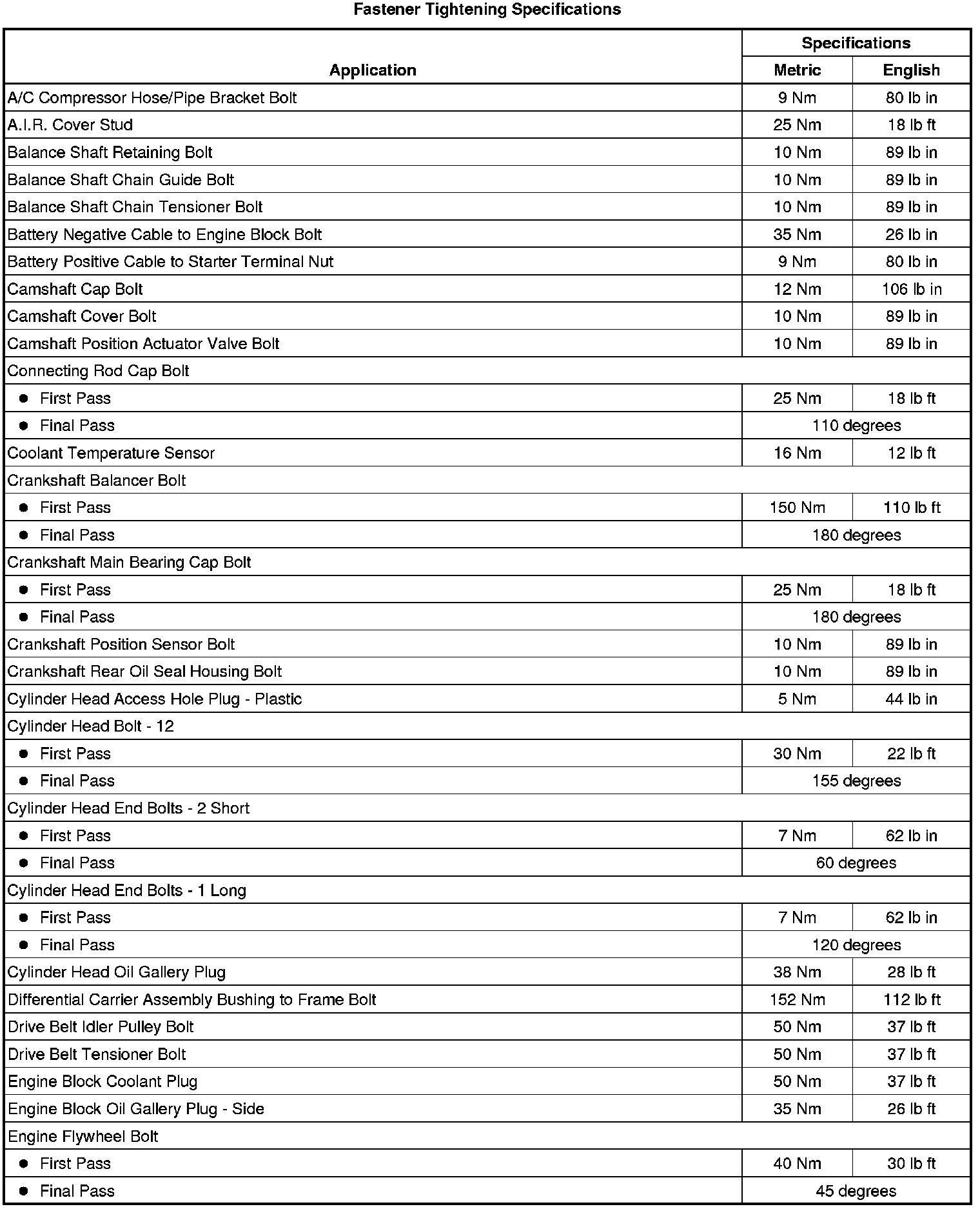 Second Pass 20 Nm (15 lb ft)