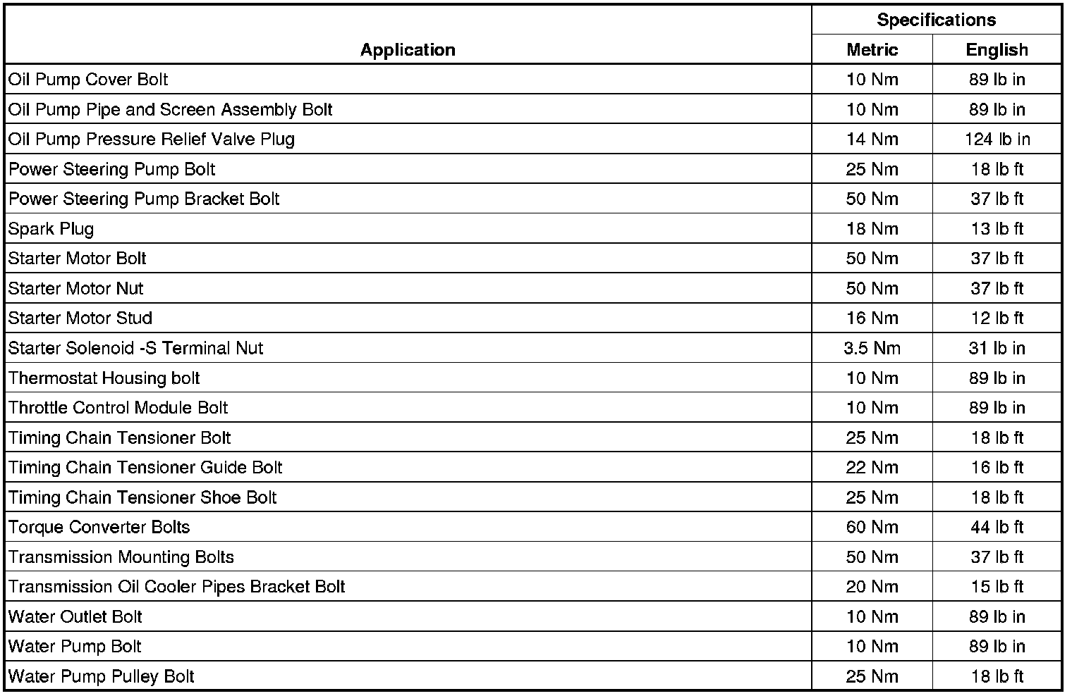 Water Pump Bolt 10 Nm (89 lb in)