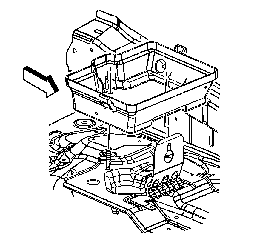 1. Install the lower battery box to the retainer stud and battery tray.