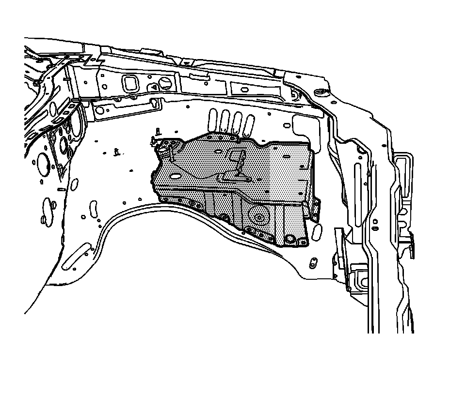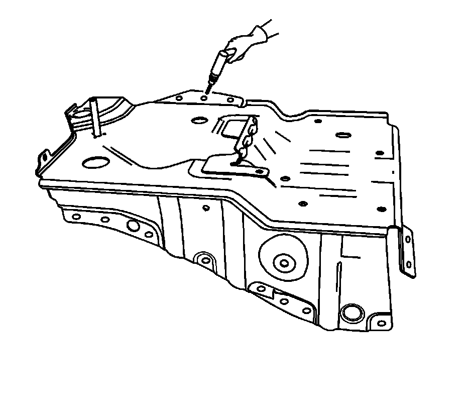 1. Drill 8 mm (5/16 in) plug weld holes as necessary in locations noted from the original battery tray.