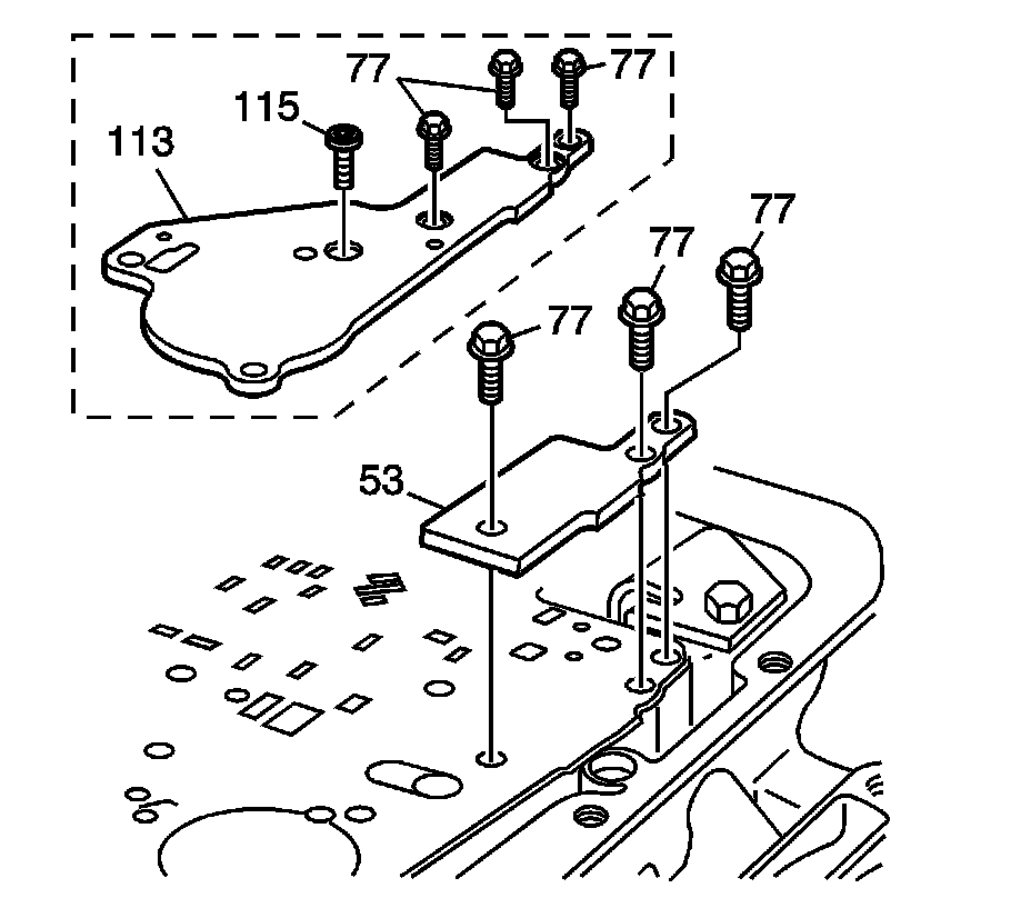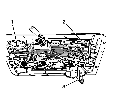 2. Remove the transmission oil pan and filter. Refer to Automatic Transmission Fluid and Filter Replacement (Automatic Transmission Fluid and Filter Replacement).