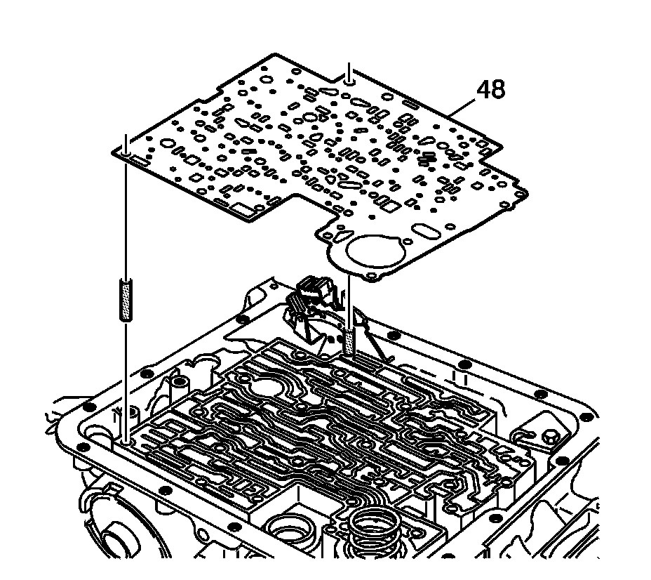 9. Remove the bonded valve body spacer plate (48), discard, do not reuse.