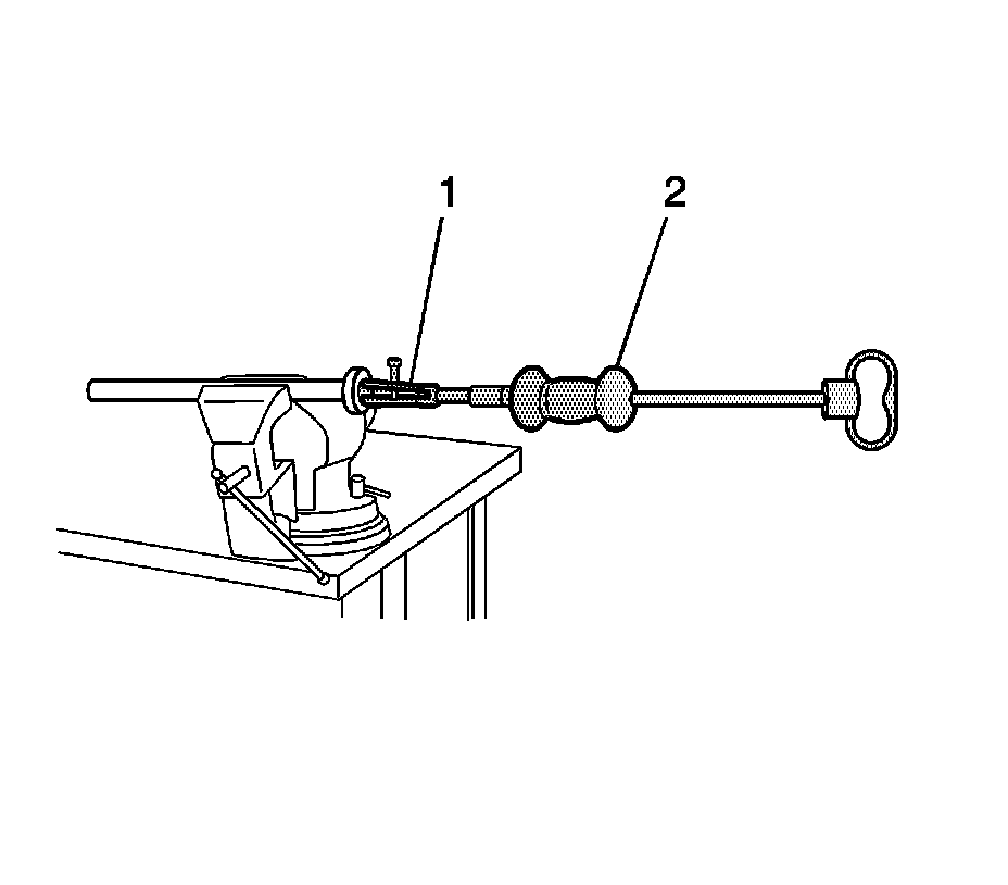 4. Using the J 29369-1 (1) and the J 2619-01 (2), remove the clutch bearing.