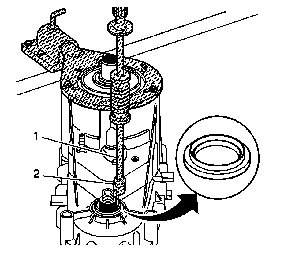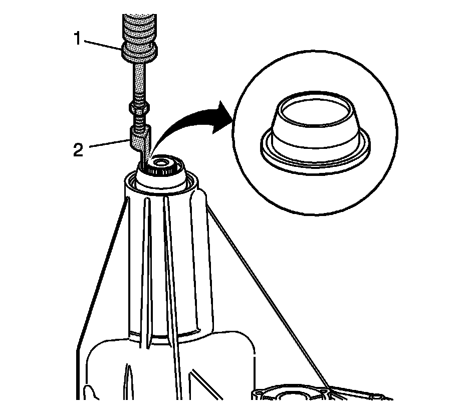 18. Using the J 6125-1B - remover (1) and the J 23129 - remover (2), remove the front output shaft seal.