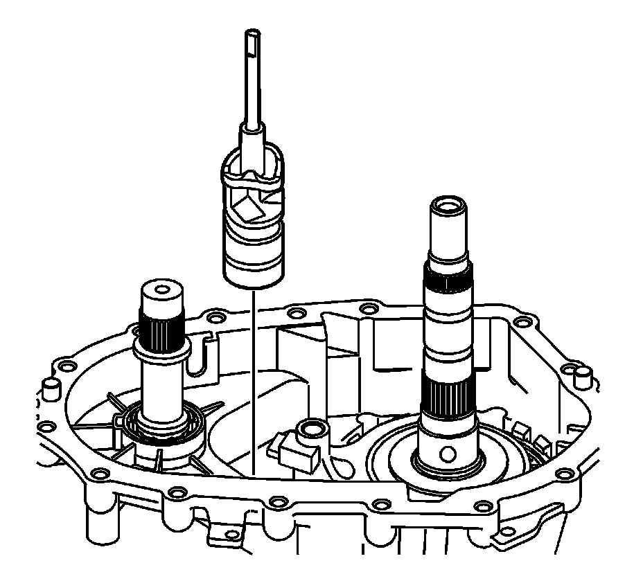 Caution: In order to prevent component damage, properly remove and install the shift cam and shaft assembly. When removing or installing the shift cam and shaft assembly, keep the shaft straight and do not tilt. Tilting the shift cam and shaft assembly in the transfer case housing will break the tip on the end of the shaft.