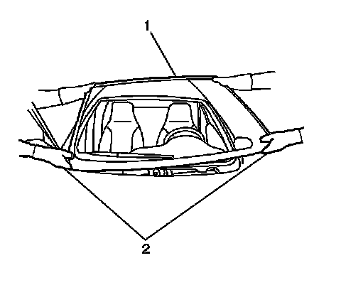 Note: Do not apply the black number 3 primer to the existing bead (1) of the urethane adhesive on the pinch-weld flange. Apply the primer only to nicks, scratches or the primed surfaces.
