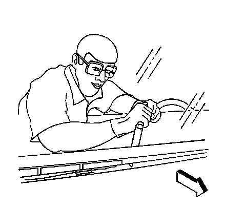 3. Remove the window side reveal moldings from the vehicle. Refer to Windshield Side Reveal Molding Replacement (H3 with UVF) (Windshield Side Reveal Molding Replacement (H3 with UVF))Windshield Side Reveal Molding Replacement (H3T) (Windshield Side Reveal Molding Replacement (H3T))Windshield Side Reveal Molding Replacement (Without UVF) (Windshield Side Reveal Molding Replacement (Without UVF)).