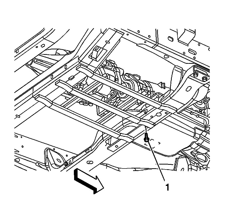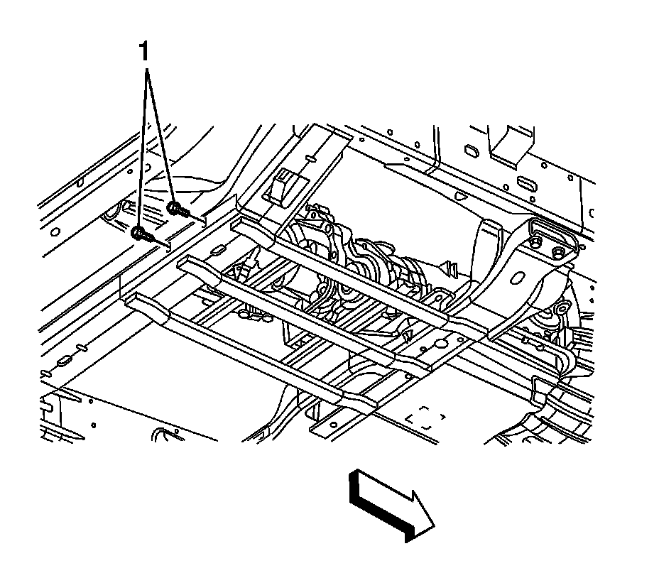 2. Install the bolts (1) securing the rear catalytic converter guard to the frame crossmember.