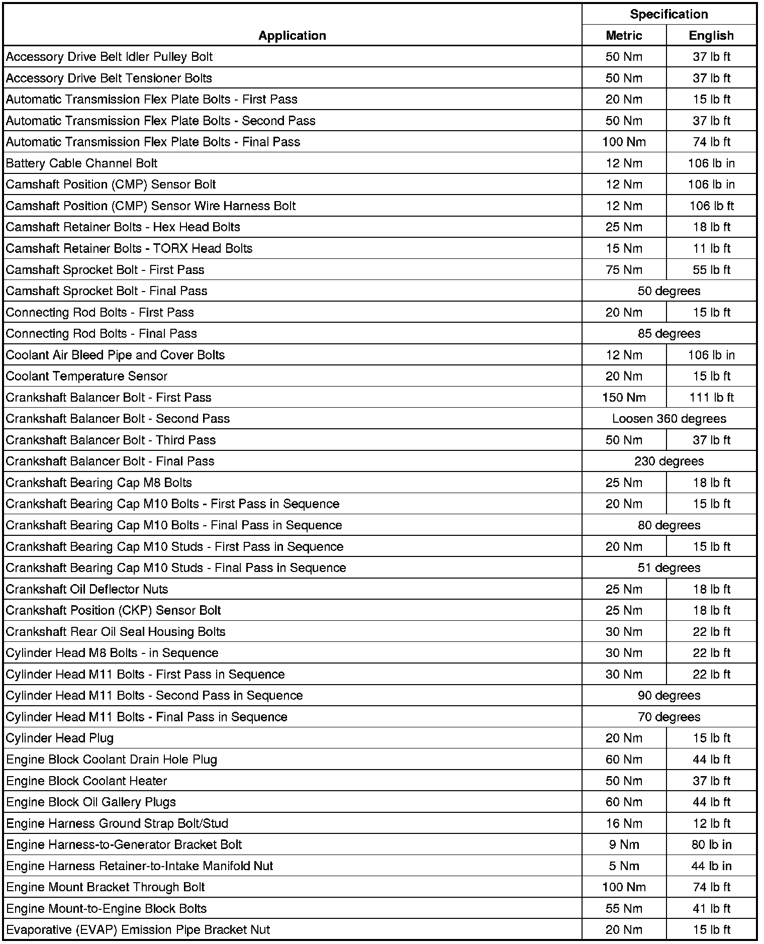 Final Pass 100 Nm (74 lb ft)
