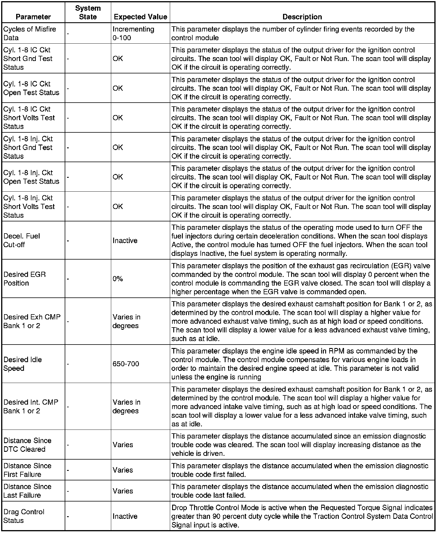 The Engine Control Module Scan Tool Data List contains all engine-related parameters that are available on the scan tool. The list is arranged in alphabetical order. A given parameter may appear in any one of the data lists, and in some cases may appear more than once, or in more than one data list in order to group certain related parameters together.