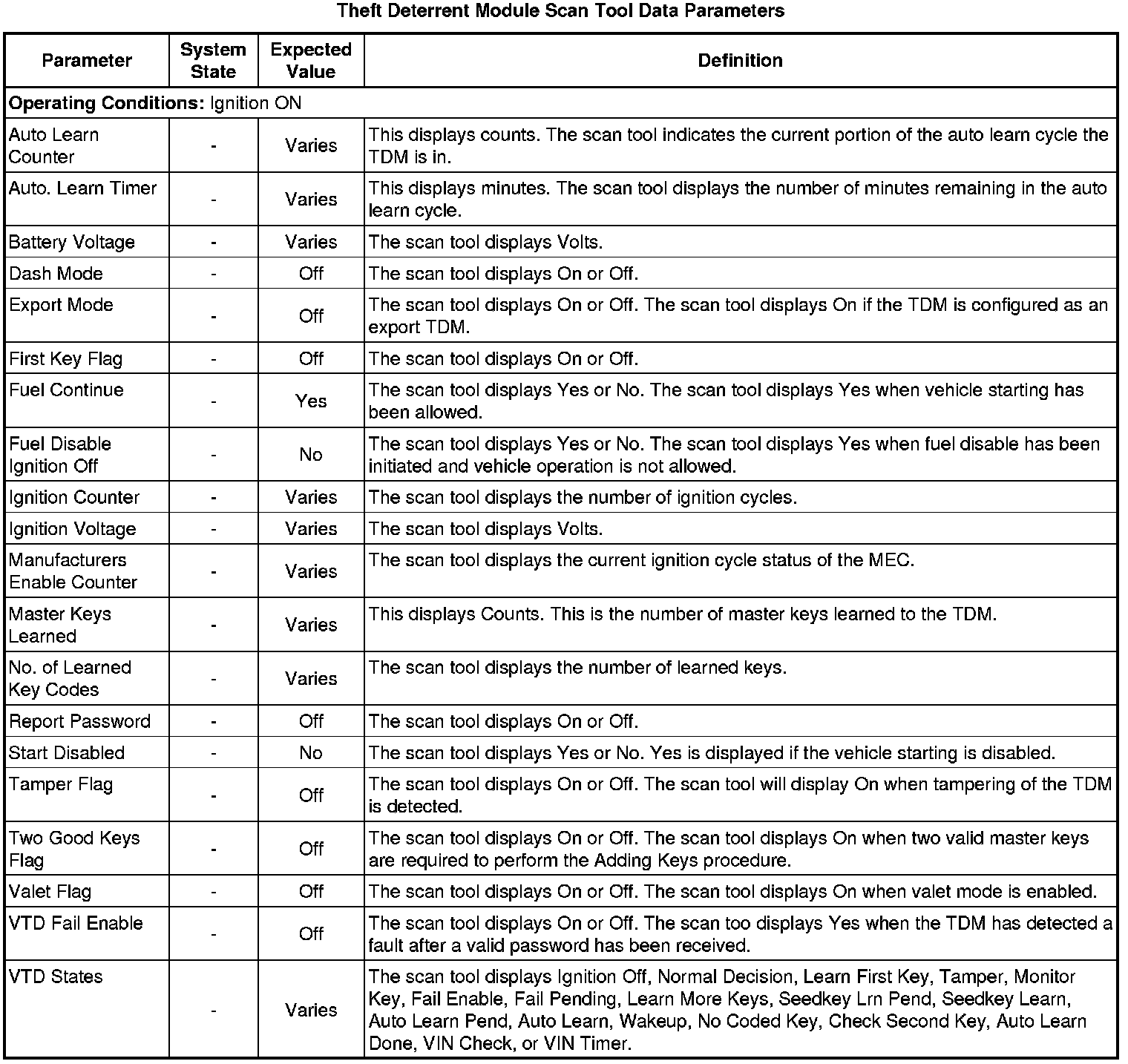 Theft Deterrent Module Scan Tool Information