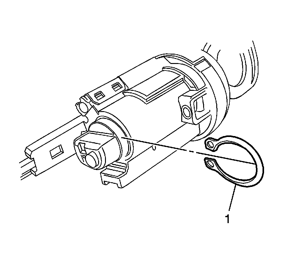 16. Install the retaining clip (1) onto the coded lock cylinder where it comes out of the back of the lock cylinder housing.