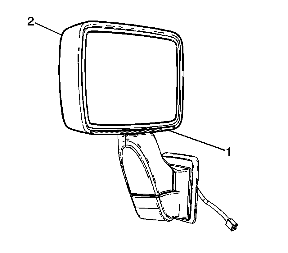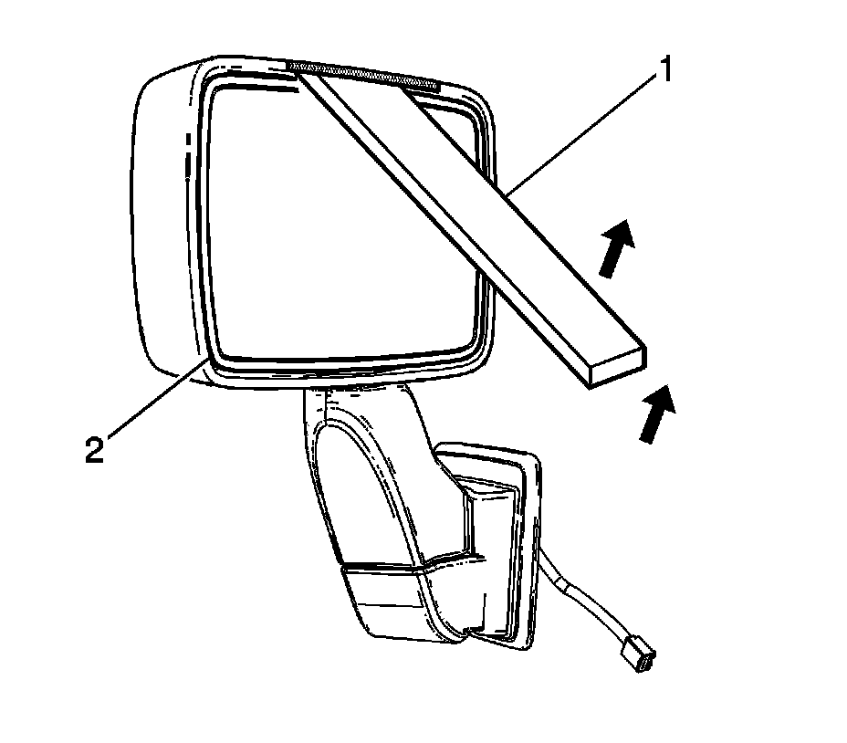 1. Apply several layers of masking tape (1) to the mirror lower housing edge (2) to protect the finish.